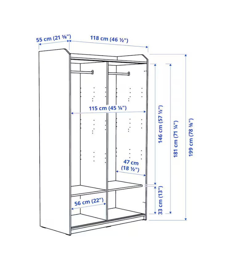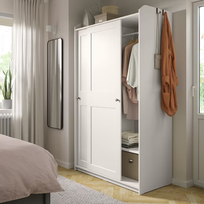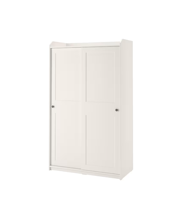 Wardrobe with sliding doors, white, 118x55x199 cm