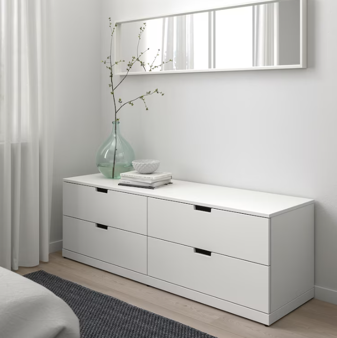 Chest of drawers, 4 drawers, white,160×54 cm