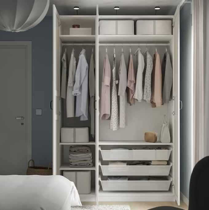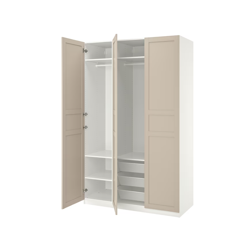 Wardrobe combination, white/light beige, 150x60x236 cm