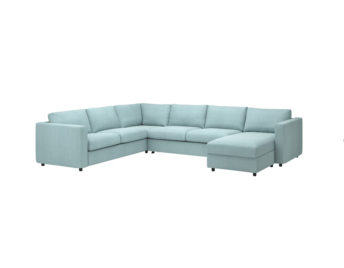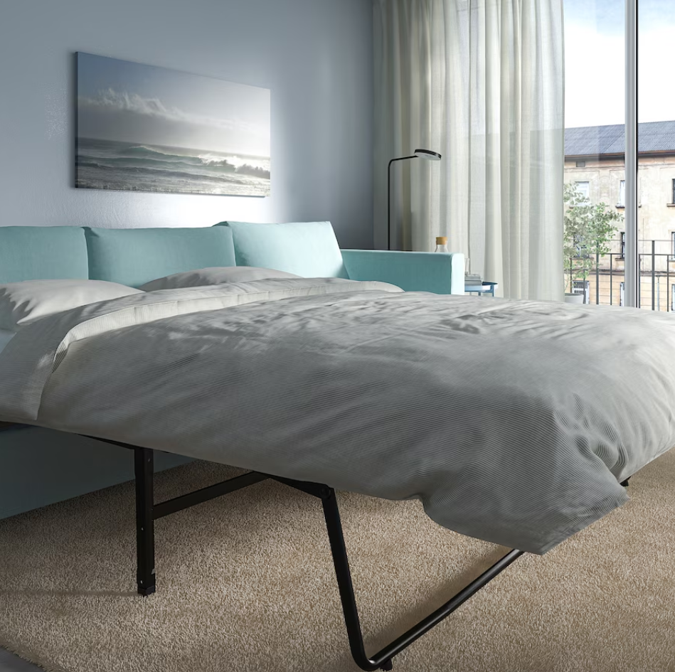 Corner sofa bed 5o with chaise, Saxemara light blue